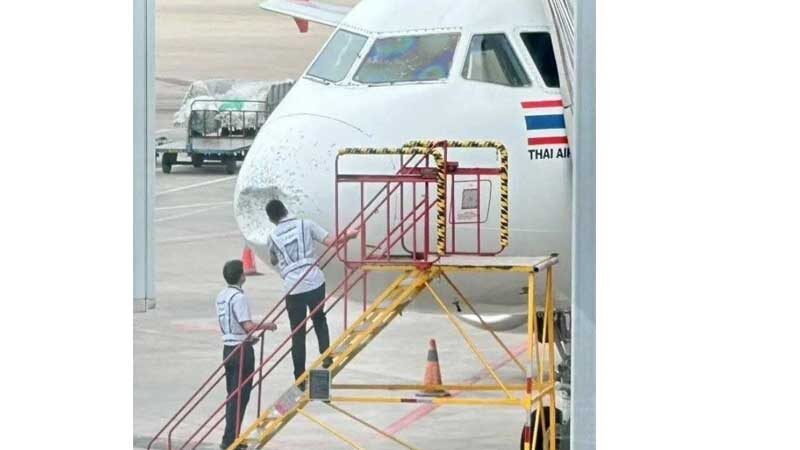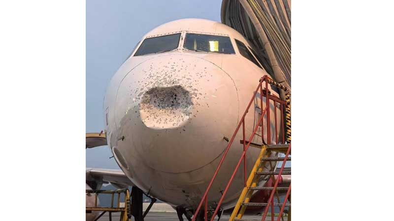 โดยเครื่องบินแบบแอร์บัส A320 ทะเบียน HS-BBA ถูกลูกเห็บกระแทกอย่างรุนแรง ส่งผลให้บริเวณส่วนหัวเครื่องบิน และกระจกหน้าห้องนักบินได้รับความเสียหาย