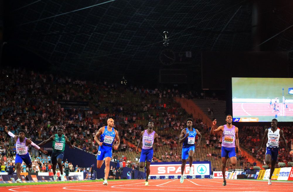 มาร์เซลล์ จาคอบส์ ลมกรดดีกรี เหรียญทอง 100 เมตร โอลิมปิก 2020 นั่งบัลลังก์นักวิ่งที่เร็วที่สุดในยุโรปหลังคว้าเหรียญทอง กรีฑาชิงแชมป์ยุโรป ที่เมืองมิวนิก ประเทศเยอรมนี ด้วยเวลา 9.95 วินาที เฉือน แชมป์เก่า ชาร์เนล ฮิวจ์ส จากสหราชอาณาจักร ที่เข้าป้ายคว้าเหรียญเงินเวลา 9.99 วินาทีไป 0.04 วินาที และเหรียญทองแดง เยเรไมห์ อาซู จากสหราชอาณาจักรเวลา 10.13 วินาที