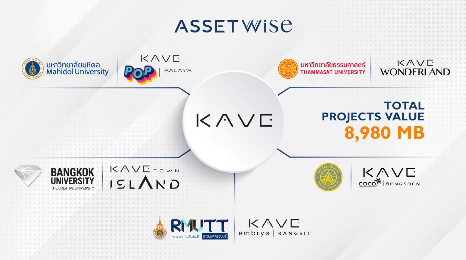 Kave เป็นแคมปัส คอนโดที่แอสเซทไวส์พัฒนามาแล้ว 5 ปี และกลายเป็นโมเดลที่ประสบความสำเร็จ คีย์สำคัญคือ การลงโลเคชันที่ใกล้มหาวิทยาลัย มีสิ่งอำนวยความสะดวกขนาดใหญ่และตรงใจนักศึกษา (เช่น เกมรูม ห้องติวหนังสือ จัดกิจกรรมคอนเสิร์ต) ทำให้นักศึกษาชื่นชอบมากกว่าเช่าหอพักทั่วไป
