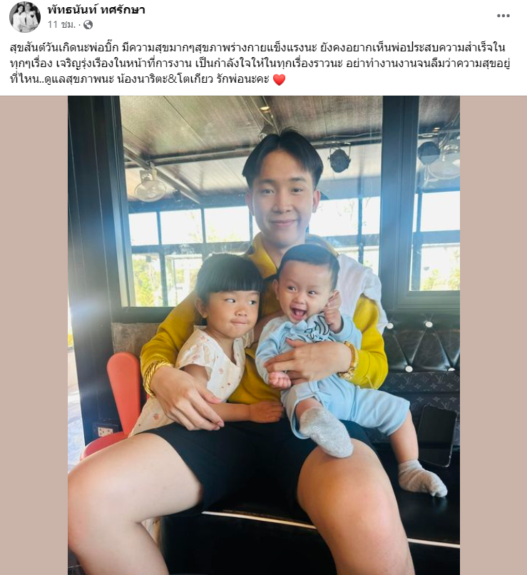 โดย ‘แพรวพราว’ ได้โพสต์ภาพ พ่อบิ๊กและลูกๆ น้องนาริตะ และ น้องโตเกียว พร้อมเขียนข้อความอวยพรว่า “สุขสันต์วันเกิดนะพ่อบิ๊ก มีความสุขมากๆ สุขภาพร่างกายแข็งแรงนะ ยังคงอยากเห็นพ่อประสบความสำเร็จในทุกๆ เรื่อง เจริญรุ่งเรืองในหน้าที่การงาน เป็นกำลังใจให้ในทุกเรื่องราวนะ อย่าทำงานจนลืมว่าความสุขอยู่ที่ไหน..ดูแลสุขภาพนะ น้องนาริตะ&โตเกียว รักพ่อนะคะ❤️”