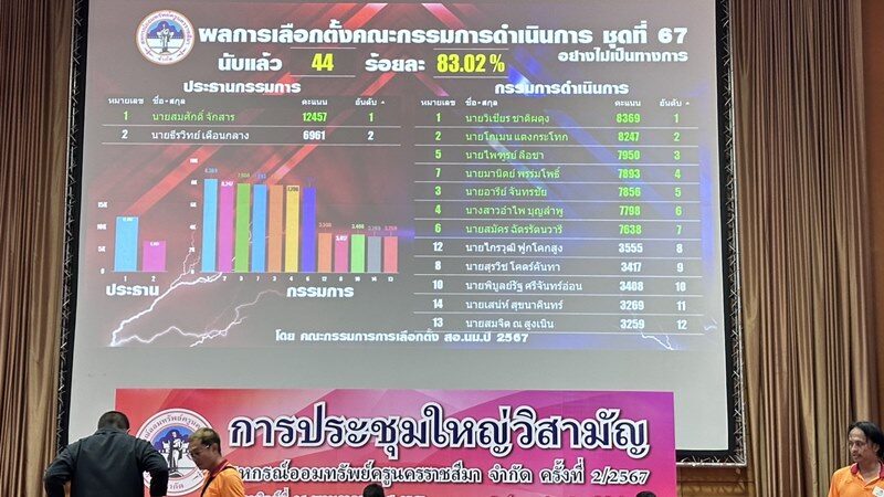 วันที่ 26 พ.ค.2567 ที่อาคารสุรพัฒน์ 2 มหาวิทยาลัยเทคโนโลยีสุรนารี (มทส.) นครราชสีมา สหกรณ์ออมทรัพย์ครูนครราชสีมา (สอค.นม) จัดการประชุมใหญ่วิสามัญ ครั้งที่ 2/2567 เพื่อเลือกตั้งประธานและกรรมการดำเนินการชุดที่ 67 แทนตำแหน่งเดิมที่ครบวาระ โดยมีสมาชิกสามัญซึ่งเป็นบุคลากรทางการศึกษาทุกระบบในเขตพื้นที่จ.นครราชสีมา นับหมื่นคนเดินทางมาแสดงตนกันอย่างคึกคัก