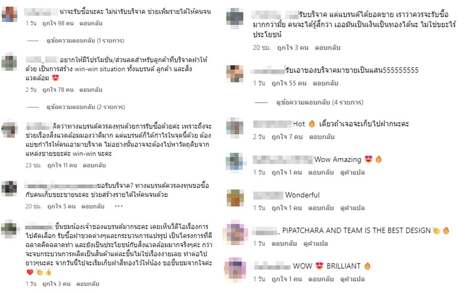 อีกทั้งแบรนด์ยังมีการรับซื้อขยะจากชุมชนที่ทำข้อตกลงเป็นพาร์ทเนอร์อยู่แล้ว ไม่ได้รับบริจาคเพียงอย่างเดียว