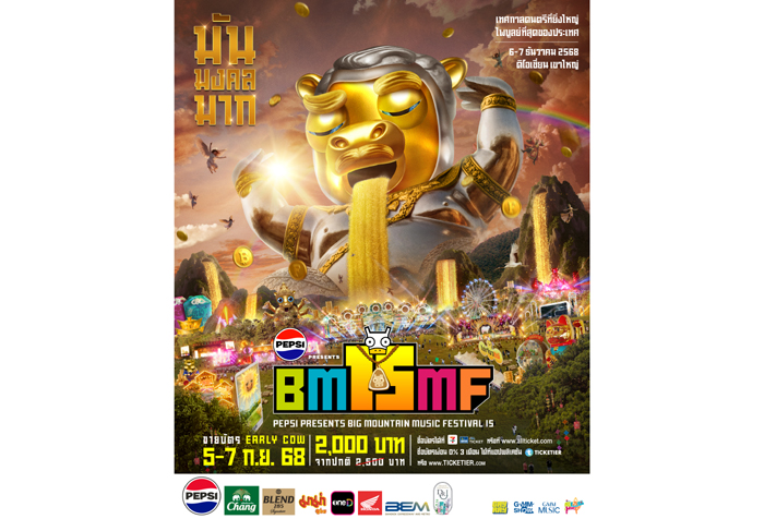 นับถอยหลังอีกไม่นานเกินรอ เทศกาลดนตรีที่ใหญ่ที่สุดในไทยกำลังจะกลับมาอีกครั้ง ในวันเสาร์ที่ 6 และวันอาทิตย์ที่ 7 ธันวาคม 2568 ณ ดิ โอเชียน เขาใหญ่ กับ “Pepsi presents Big Mountain Music Festival ครั้งที่ 15” (เป๊ปซี่ พรีเซนต์ บิ๊กเมาน์เท่น มิวสิค เฟสติวัล ครั้งที่ 15) โดยผู้จัดฝีมือดีที่สร้างความประทับใจให้ผู้เข้าร่วมงานมาอย่างต่อเนื่องทุกปีอย่าง “GAYRAY” หน่วยงานภายใต้ GMM SHOW