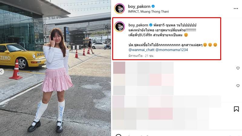 จากนั้น เฮียบอย ยังโพสต์รูป น้องวันใหม่ สวมชุดสุดคิวต์กับท่าโพสน่ารัก เขียนข้อความกำกับว่า “พัดซาวี-ขุนพล วนไปปปปปป แต่งหน้ายังไม่พอ เอาชุดมาเปลี่ยนด้วย!!!! เพื่อพี่ๆ BUS ที่รัก ส่วนพี่ชายจะเป็นลม ปล.ชุดแม่ซื้อให้ไปอีกกกกกกกกกก ลูกสาวแม่สุดๆ”