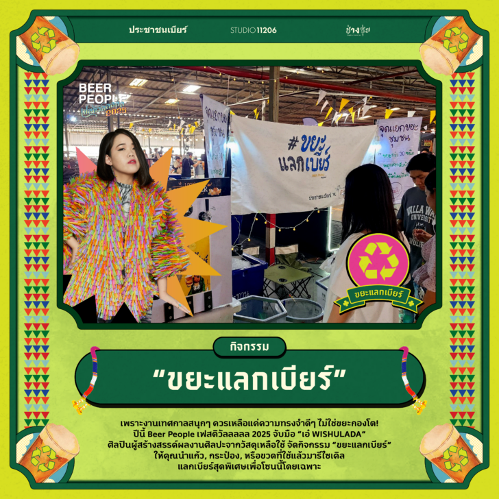 เพราะงานเทศกาลสนุกๆ ควรเหลือแค่ความทรงจำดีๆ ไม่ใช่ขยะกองโต! ปีนี้ Beer People เฟสติวัลลลลล 2025 จับมือ "เอ๋ WISHULADA" ศิลปินผู้สร้างสรรค์ผลงานศิลปะจากวัสดุเหลือใช้ จัดกิจกรรม "ขยะแลกเบียร์" ให้คุณนำแก้ว กระป๋อง หรือขวดที่ใช้แล้วมารีไซเคิล แลกเบียร์สุดพิเศษเพื่อโซนนี้โดยเฉพาะ