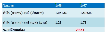 โดยราคาหุ้น KKP ปรับตัวลดลงหลังรายงานผลการดำเนินงานงวดไตรมาส 1 ปี 68 มีกำไรสุทธิลดลง ดังนี้