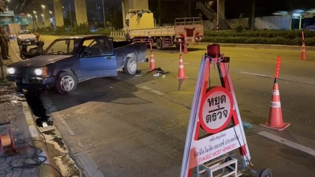อ่านข่าวต้นฉบับได้ที่ : รถบรรทุก พุ่งชนด่านตรวจเมา ตร.จราจร-รถกระบะ เจ็บ3 อ้างก้มหยิบมือถือ