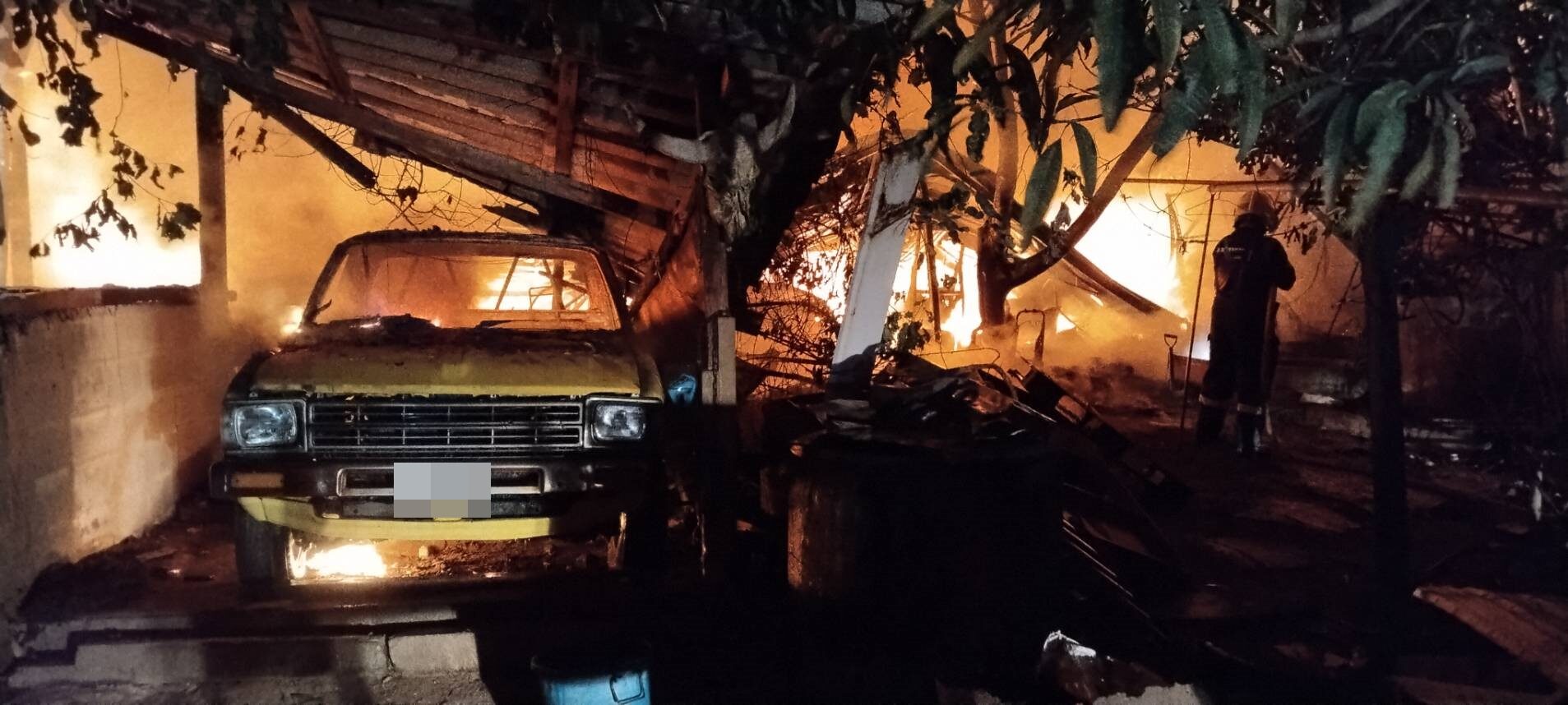 แสงเพลิงลุกไหม้โหมกระหน่ำนานกว่า 2 ชั่วโมง จึงสามารถควบคุมเพลิงไว้ได้ โดยไฟไหม้บ้านและโกดังวอดจนหมด รถยนต์เสียหาย 3 คัน รถจักรยานยนต์เสียหายอีก 5 คัน ในกองเพลิง โดยพื้นที่ดังกล่าวเป็นร้านรับซื้อของเก่าและขายอะไหล่รถยนต์ แบตเตอรี่รถยนต์จำนวนมาก รวมถึงอุปกรณ์ส่วนควบรถยนต์ ซึ่งมีอยู่เป็นจำนวนมากในโกดังเสียหายหมด รวมถึงของวางอยู่รอบๆบ้านถูกเพลิงไหม้หมดในครั้งนี้