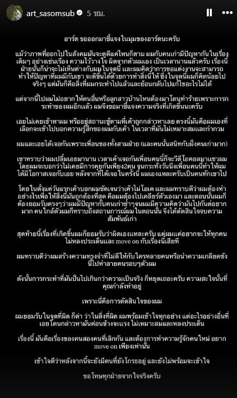 เอย มาแล้วโต้กลับปมถูกโยงมือที่สามทำ ไฮโซอาร์ต บอกเลิก เกรซ ไปไม่ถึงวันวิวาห์