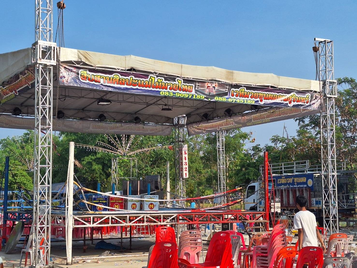 วันที่ 22 เม.ย.67 ผู้สื่อข่าวรายงานว่าเมื่อคืนวันที่ 21 เม.ย.ที่ผ่านมา ที่วัดหนองเต็ง ต.หนองเต็ง อ.กระสัง จ.บุรีรัมย์ จัดงานฉลองพัดยศให้กับเจ้าอาวาสวัดหนองเต็ง ซึ่งในงานมีการจัดมหรสพหลากหลาย หนึ่งในนั้นมีการจัดการแข่งขันมวยไทยด้วย