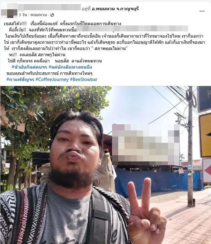 วันที่ 25 ก.พ.69 สมาชิกเฟซบุ๊กรายหนึ่ง ซึ่งมีอาชีพเปิดร้านกาแฟสัญจร โพสต์ตัดพ้อ หลังรีสอร์ตแห่งหนึ่งใน จ.กาญจนบุรีไม่ให้เข้าพัก ทั้งที่โอนเงินไปเรียบร้อยแล้ว เพราะสภาพไม่ผ่าน โดยระบุว่า
