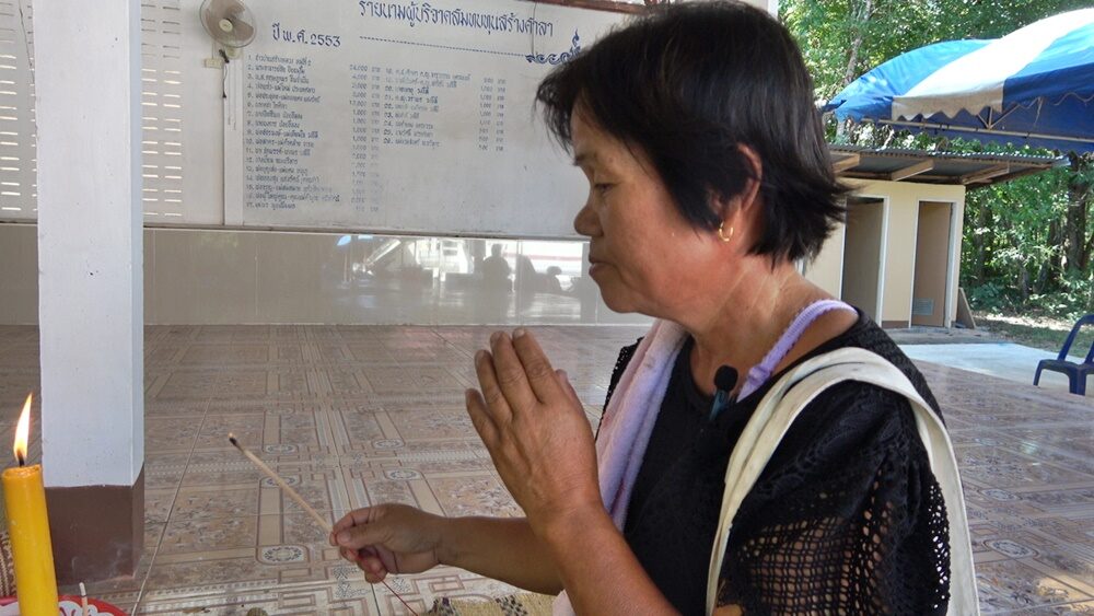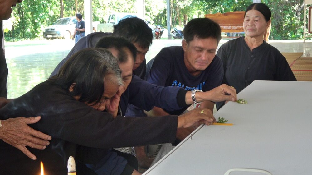 นางสำรอง จุดธูปบอกดวงวิญญาณน้องชาย บอกว่า "จงดลบันดาลให้จับคนที่ฆ่าน้องได้เร็วๆ ดลบันดาลให้ชนะ ทำให้พี่ด้วย น้องชายตายแปลก ครั้งแรกคิดว่ารถชน แต่ดูบาดแผลแล้วเป็นการทุบตี และตำรวจบอกว่าถูกทำร้าย ซึ่งตนคิดว่าน้องชายโดนฆาตกรรมแน่นอน ก็ไม่รู้ใครฆ่าน้องชาย ฆ่าด้วยสาเหตุใด เพราะน้องชายไม่เคยทำผิดใจใคร อยากให้ตำรวจจับผู้ร้ายได้เร็วๆ ซึ่งยังไม่ทำพิธีเผา จะเอาเข้าเบ้า 3 ปี แล้วค่อยนำศพขึ้นมาเผา ญาติพี่น้องจะได้ไม่มีอาเพศตายตามกัน"