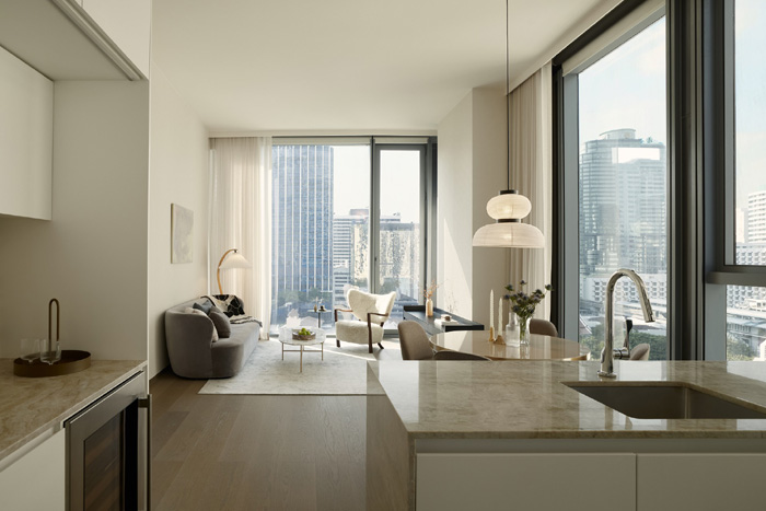 “คอนเซ็ปต์ “Daring & Timeless Elegant” คือการผสมผสานความน่าค้นหาของการดีไซน์ ที่ทุกชิ้นเปี่ยมไปด้วยเรื่องราว และรายละเอียดที่น่าหลงใหล ไม่ว่าจะเป็นรูปทรงโค้งมน สีสันที่มีความทันสมัย ตลอดจนการเลือกใช้วัสดุธรรมชาติจากทั่วทุกมุมโลกให้มีความกลมกลืน บวกกับความพิถีพิถันในการเลือกสรรเฟอร์นิเจอร์และของตกแต่งบ้านทีมีสไตล์ร่วมสมัย เหมาะกับทุกช่วงเวลาของชีวิต ทำให้ Residences แห่งนี้จะตอบโจทย์ไลฟ์สไตล์ที่ทันสมัยและมีเอกลักษณ์ได้แม้เวลาผ่านไปนานเพียงใด”