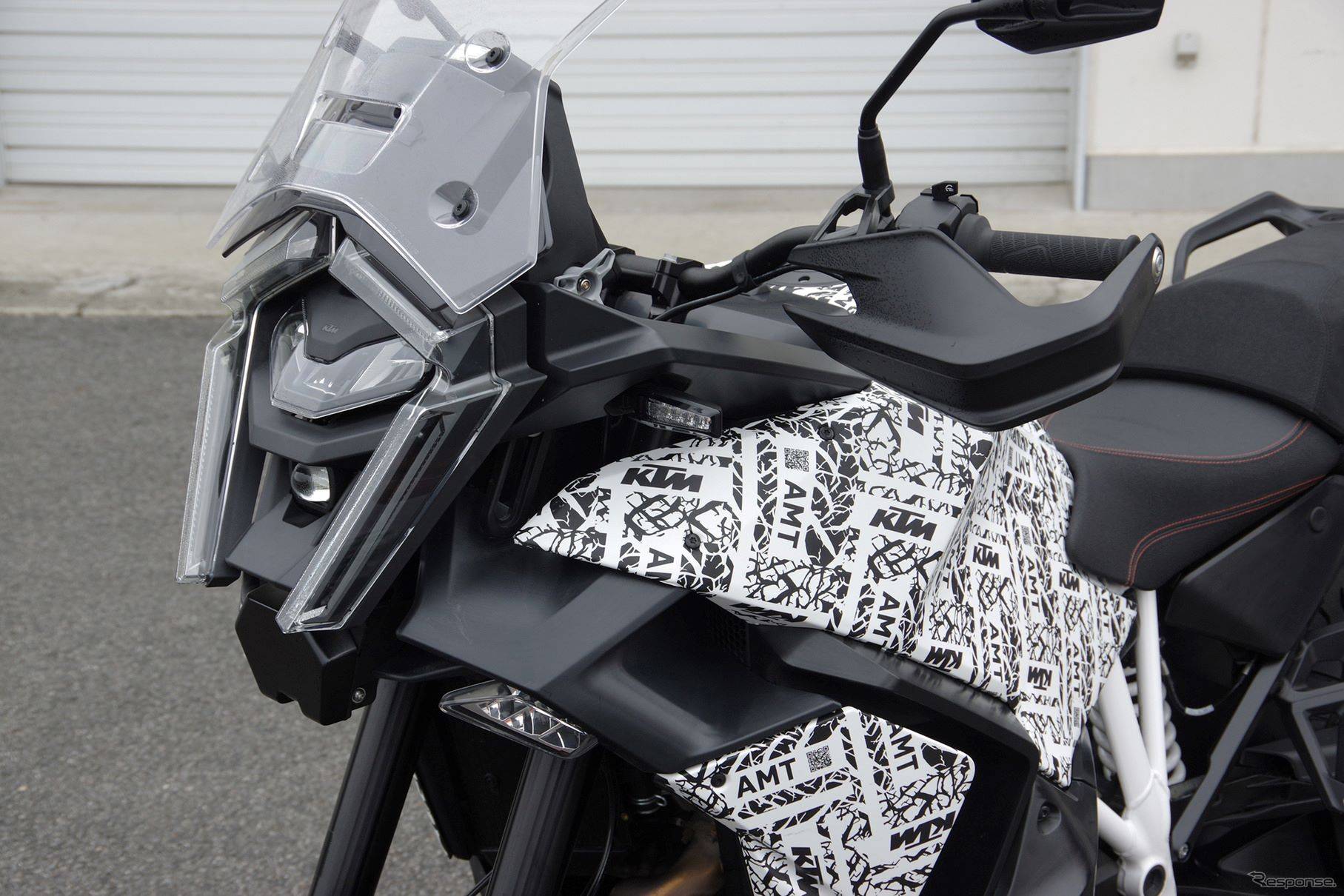 KTM 1390 Super Adventure ถูกพบเห็นขณะทดสอบแล้ว แม้ว่าจะถูกพรางสายด้วยสติ๊กเกอร์แต่ก็ยังเห็นได้ชัดเจนว่ารถรุ่นนี้ดูใหญ่ บึกบึน โดยด้านหน้าประกอบด้วยไฟ LED ที่เรียงซ้อนกันเป็นแนวตั้ง ชุดไฟด้านบนเป็นแนวนอน ส่วนชุดไฟ LED โปรเจ็กเตอร์มีไฟ LED DRL รูปบูมเมอแรงล้อมรอบ นอกจากนี้ KTM ยังนำเสนอไฟเลี้ยวที่อยู่ใต้ชุดไฟหลักอีกด้วย