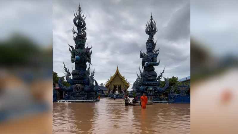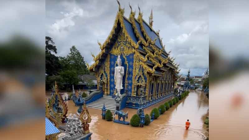 น่าเป็นห่วง วัดร่องเสือเต้น วัดสีน้ำเงินชื่อดัง เชียงราย ถูกน้ำท่วมแล้ว หลังน้ำกกทะลัก พบระดับน้ำสูงกว่า 1- 2 เมตร ในบางจุดพื้นที่ที่ลุ่มต่ำ ชาวบ้านได้รับผลกระทบจำนวนมาก