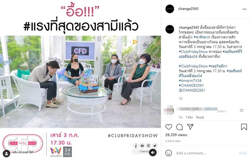 โดย เนย เผยเรื่องราวบางช่วงบางตอนของชีวิตคู่ว่า ดูคลับฟรายเดย์เยอะ ก็ไปทำการบ้านเลยกลับไปถามสามีเราทะเลาะกันล่าสุดเรื่องอะไร ไม่มี ทำเอา ดีเจอั๋น ภูวนาท พิธีกร ถึงกับถามเป็นไปได้เหรอคนสองคนอยู่ด้วยกันไม่เคยทะเลาะกัน