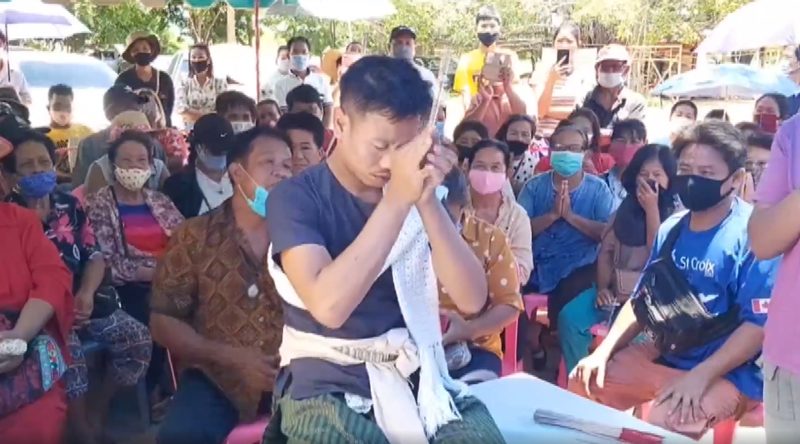 ร่างทรงทำพิธีอัญเชิญเจ้าแม่ตะเคียนสิงร่าง