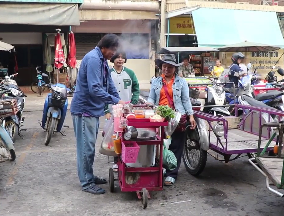 จากการสอบถาม น.ส.วิมล พลฐาล อายุ 43 ปี แม่ค้าก๋วยเตี๋ยว ชาวจ.อ่างทอง เล่าให้ฟังว่า ครอบครัวของตนมีอาชีพหลักรับจ้างซักรีด และมาขายก๋วยเตี๋ยวเสริมรายได้มาประมาณ 1 ปีโดยไปจ้างช่างต่อรถเข็นก๋วยเตี๋ยวขนาดมินิ ในราคา 1,000 บาท แล้วออกตระเวนขายก๋วยเตี๋ยวหมูน้ำตก ไปทั่วจังหวัดอ่างทองและใกล้เคียง