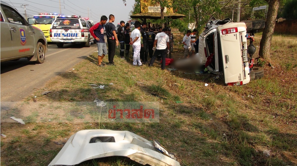 วันที่ 11 มี.ค. พ.ต.ต.ประวิทย์ จันทนา สารวัตร(สอบสวน)สภ.วังตะเคียน จ.ปราจีนบุรี รับแจ้งอุบัติเหตุรถกระบะชนท้ายรถบรรทุกพ่วง 22 ล้อ มีผู้เสียชีวิต บนถนนสายสุวรรณศร หน้าวัดหนองไผ่ล้อม หมู่ 8 ต.บ่อทอง อ.กบินทร์บุรี จ.ปราจีนบุรี จึงประสานแพทย์ร.พ.กบินทร์บุรี แล้วรุดไปตรวจสอบพร้อม หน่วยกู้ภัยมูลนิธิสัจจพุทธธรรมแห่งประเทศไทย กบินทร์บุรี