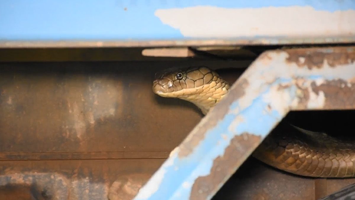 จงอางยักษ์ ซุกใต้ท้องรถ 6ล้อ กว่าจะจับได้ เลื้อยหลบ ส่งเสียงขู่ จะพุ่งฉกตลอดเวลา