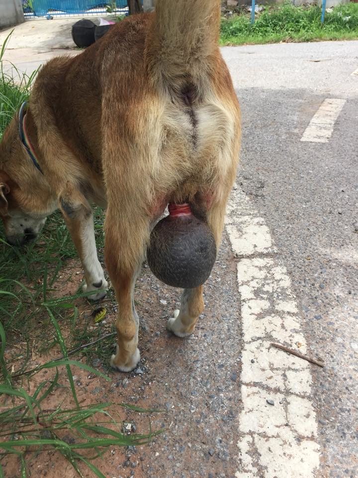 เพจเฟซบุ๊ก รักหมาจัง ได้โพสต์ภาพของสุนัขตัวผู้ตัวหนึ่ง ถูกคนใช้หนังยางรัดถุงอัณฑะเอาไว้ จนอักเสบและมีลักษณะโตกว่าปกติ โดยระบุว่าเป็นการกระทำจากความเชื่อของคนเฒ่าคนแก่เพื่อไม่ให้สุนัขไปติดสัตว์