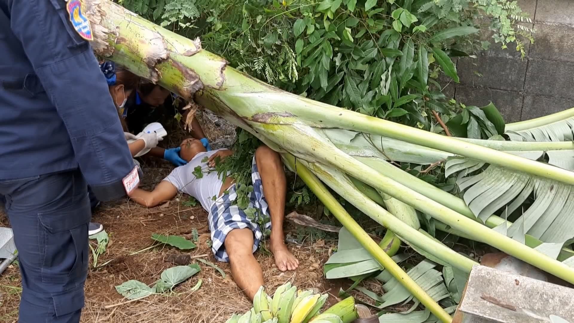 ลุงตัดต้นกล้วยน้ำว้ายักษ์ 7 เมตร พลาดเครือหนัก 80 โลล้มทับคอแทบหัก เผยคำนวณการตัดผิด หลังวานเพื่อนมาช่วยรับเกิดพลาดบาดเจ็บสาหัส