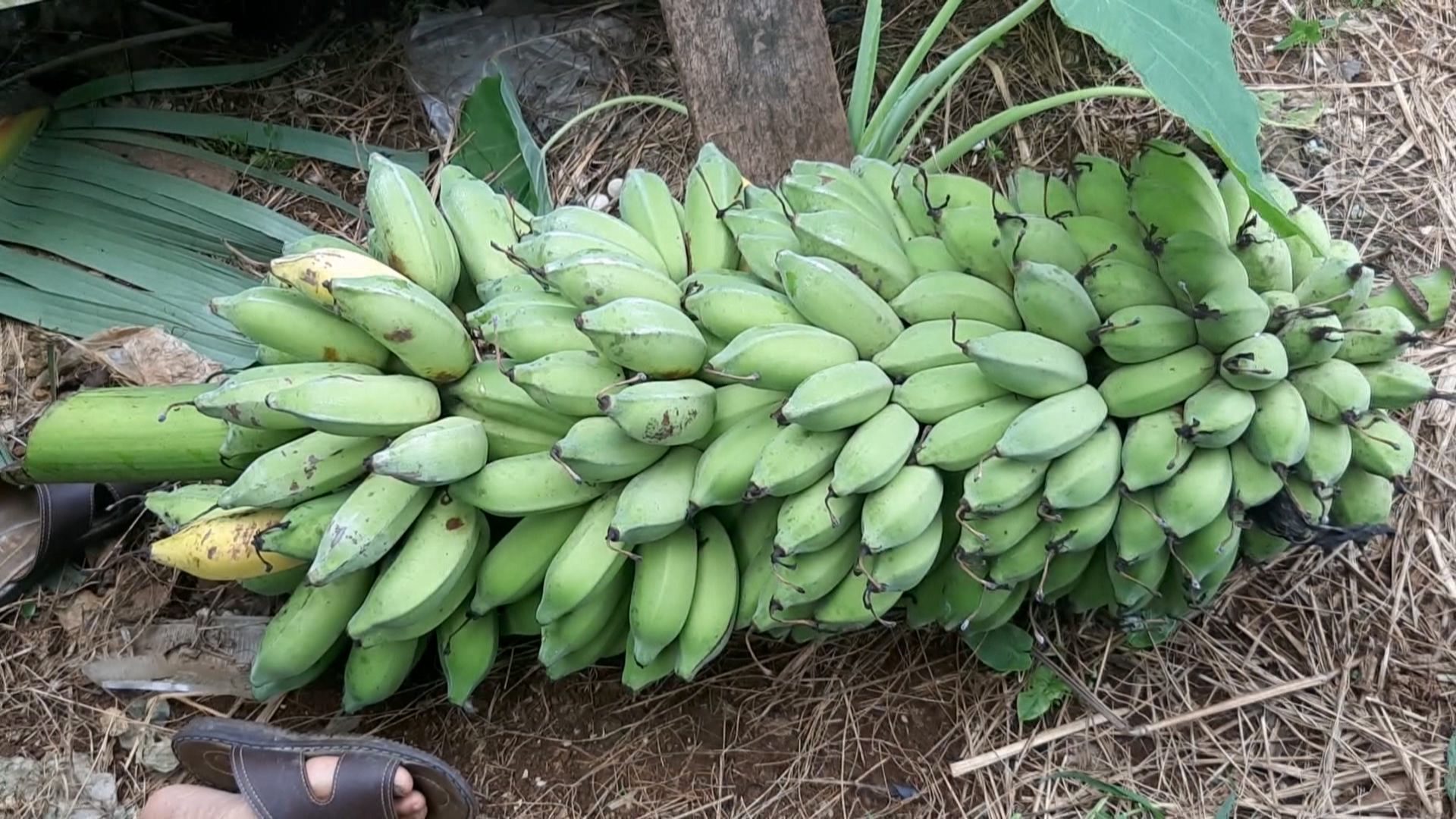 ลุงตัดต้นกล้วยน้ำว้ายักษ์ 7 เมตร พลาดเครือหนัก 80 โลล้มทับคอแทบหัก
