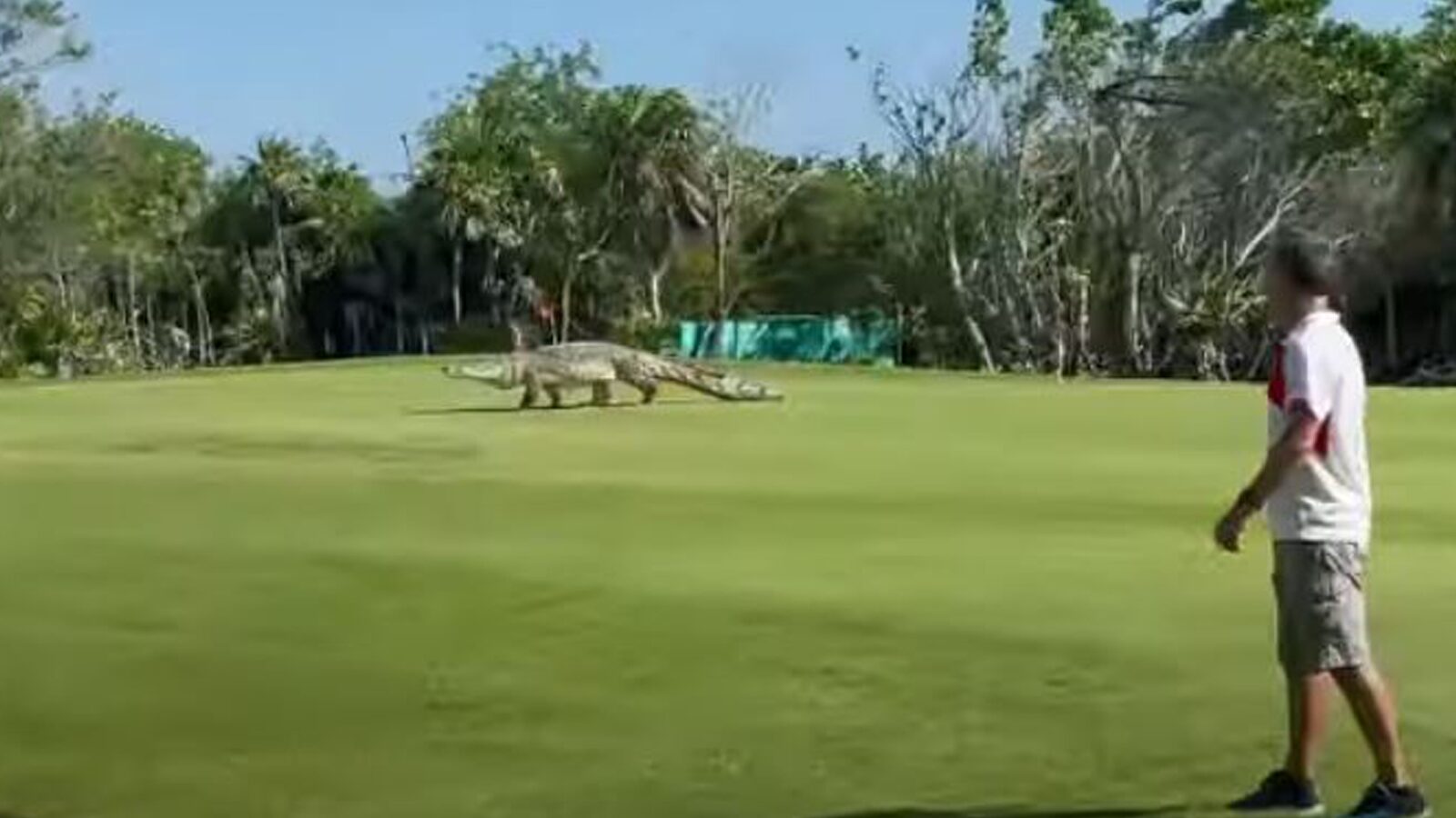 จระเข้ตัวเบิ้ม โผล่เดินกลางสนามกอล์ฟ ทำนักท่องเที่ยวแตกตื่นทั้งสนาม!