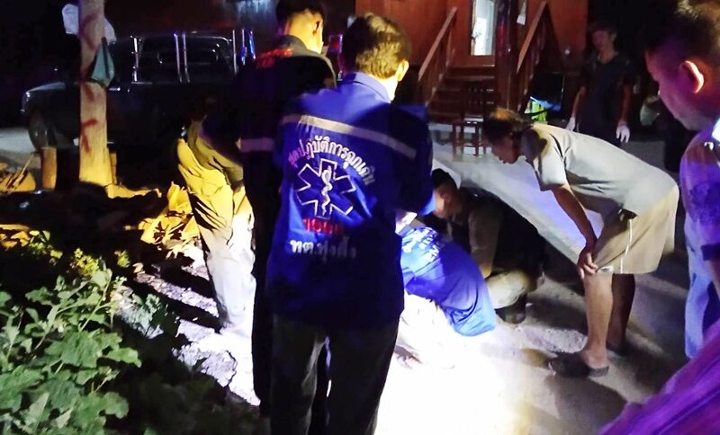 ในที่เกิดเหตุพบผู้เสียชีวิตเป็นชาย 1 ราย สภาพนอนคว่ำหน้าจมกองเลือด ข้างตัวพบมีดพร้าเล่มใหญ่ 1 เล่ม ทราบชื่อต่อมาคือ นายเอกสิทธิ์ อายุ 40 ปี พักอาศัยอยู่ที่บ้านหลังเกิดเหตุดังกล่าว ส่วนผู้ก่อเหตุรอมอบตัวกับเจ้าหน้าที่ตำรวจ เป็นชายอายุ 69 ปี คือบิดาของผู้เสียชีวิต