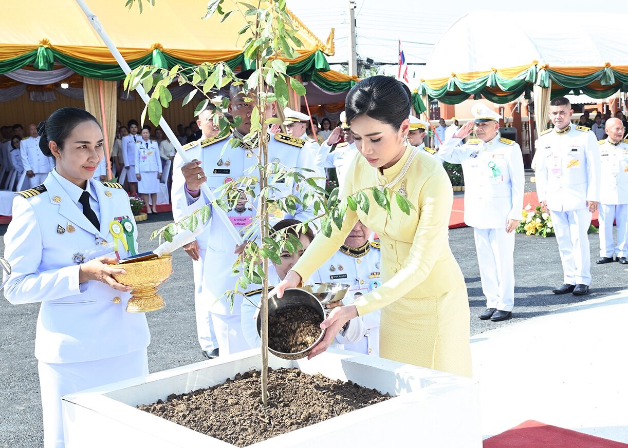 ต่อมา พล.ต.หญิง คุณหญิงชยุตรา วชิรพัทธโสภา ผู้แทนพระองค์ ได้ปลูกต้น “รวงผึ้ง” จำนวน 1 ต้น และกลับเข้าพลับพลาพิธี เพื่อประเคนผ้าไตรพระราชทาน 10 ไตร แด่พระสงฆ์ 10 รูป และประเคนผ้าไตรพระสงฆ์อีก 20 รูป กรวดน้ำ (พระสงฆ์อนุโมทนา ถวายอดิเรก)