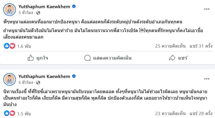 ถ้าหนูนามันไม่ดีจริงมันไม่โดนทำร้าย มันไม่โดนระรานจากพี่สาวโรเบิร์ต ทุกคนที่รักหนูนาก็คงไม่เอาชื่อเสียงแต่ละคนมาแลก”