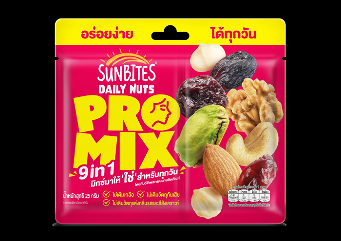 • “ซันไบทส์” เดลี่นัท ถั่วอบนกลุ่ม Better For You ตอบโจทย์คนรักสุขภาพ ที่รวมถั่วและผลไม้อบแห้งไว้ในซองเดียว ไม่เติมเกลือ ไม่เติมวัตถุกันเสีย และไม่เติมวัตถุแต่งกลิ่นรสและสีสังเคราะห์ เหมาะสำหรับการทานทุกวัน