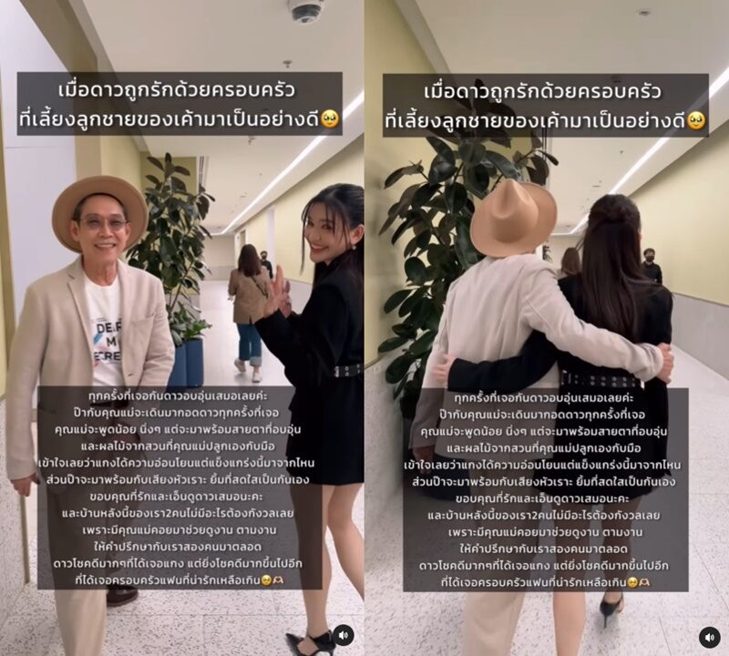 โดย ดาว เผยข้อความสุดซึ้งอีกว่า “ทุกครั้งที่เจอกันดาวอบอุ่นเสมอค่ะ ป๊ากับคุณแม่จะเดินมากอดดาวทุกครั้งที่เจอ คุณแม่จะพูดน้อย นิ่งๆ แต่จะมาพร้อมสายตาที่อบอุ่น และผลไม้จากสวนที่คุณแม่ปลูกเองกับมือ เข้าใจเลยว่าแกงได้ความอ่อนโยน แต่แข็งแกร่งนี้มาจากไหน ”