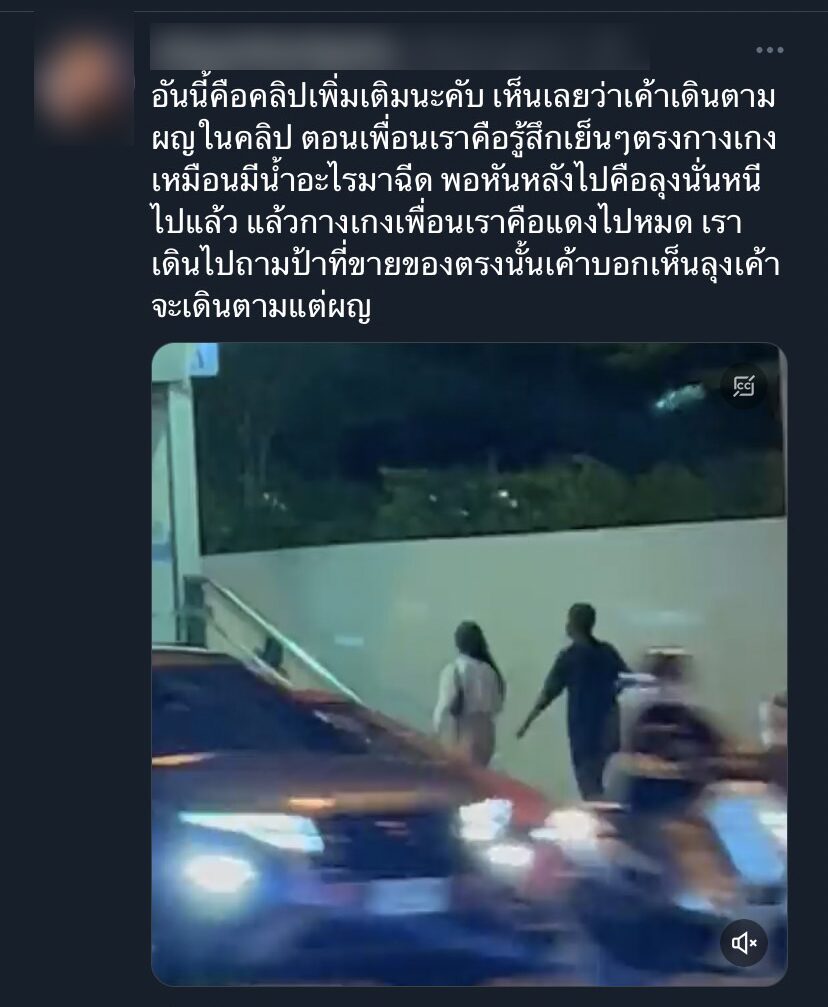 เมื่อเธอลองถามคุณป้าที่ขายของบริเวณนั้น ก็ได้ความว่า ชายโรคจิตคนดังกล่าวมักจะเดินตามเหยื่อที่เป็นผู้หญิง โดยเธอยังได้เห็นชายคนดังกล่าวเดินตามผู้หญิงอีกคนด้วย