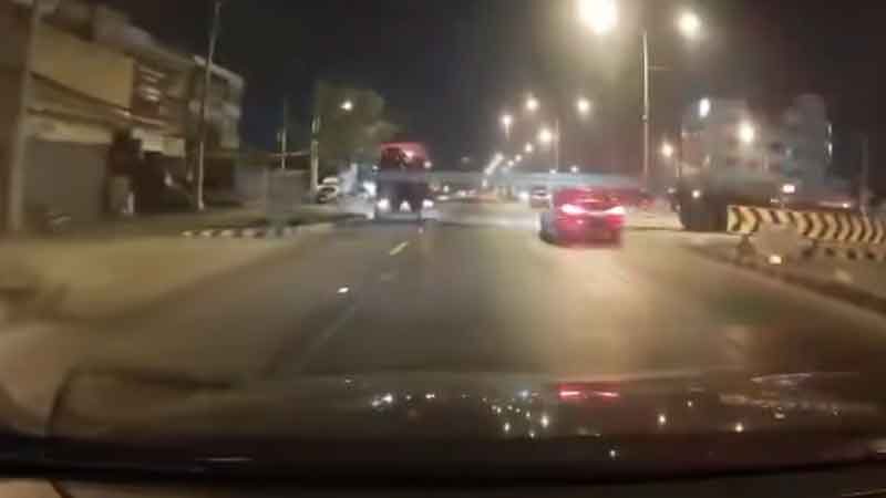 เปิดคลิปอีกมุม รถเก๋งสวมวิญญาณเดอะฟาส ซิ่งลอดใต้ท้อง รถเทรลเลอร์ขวางถนน