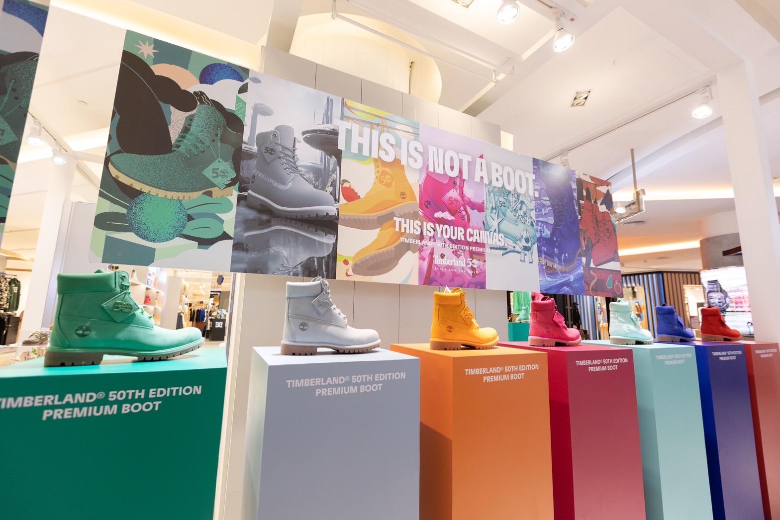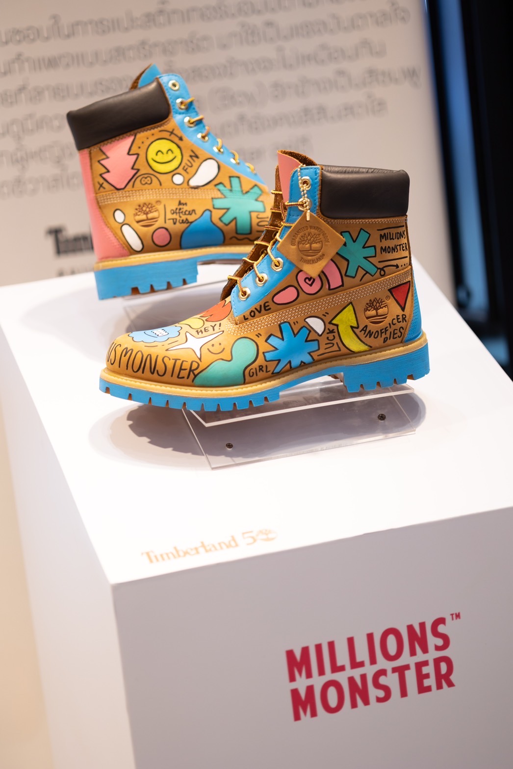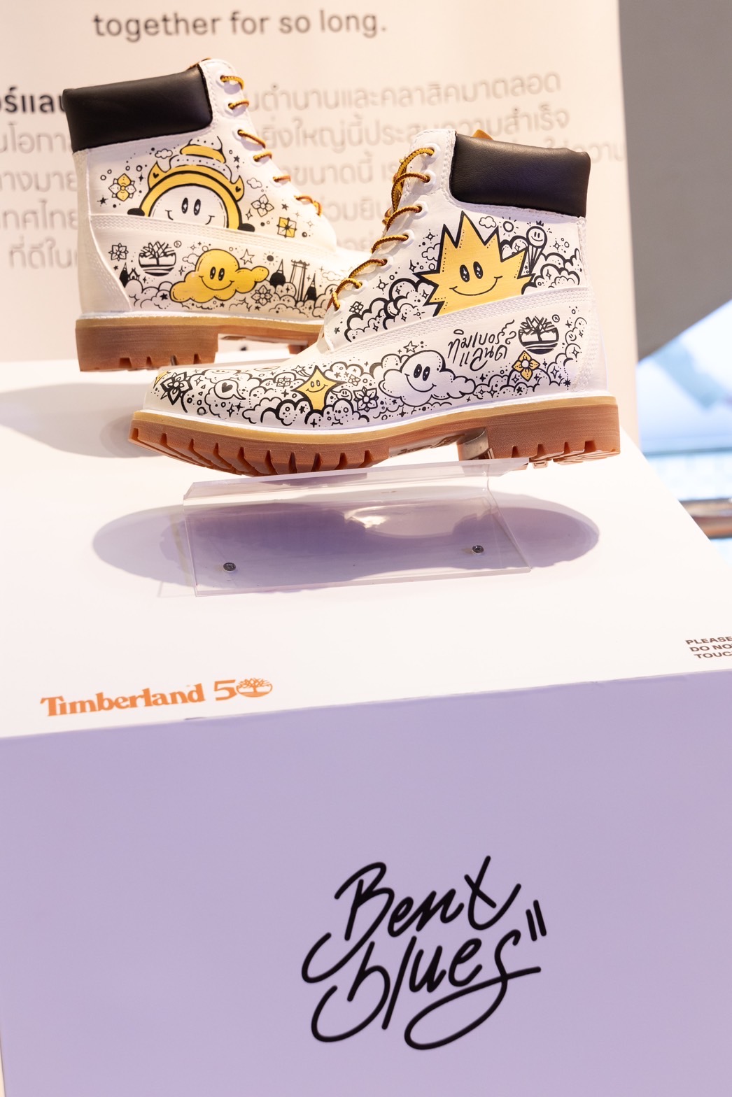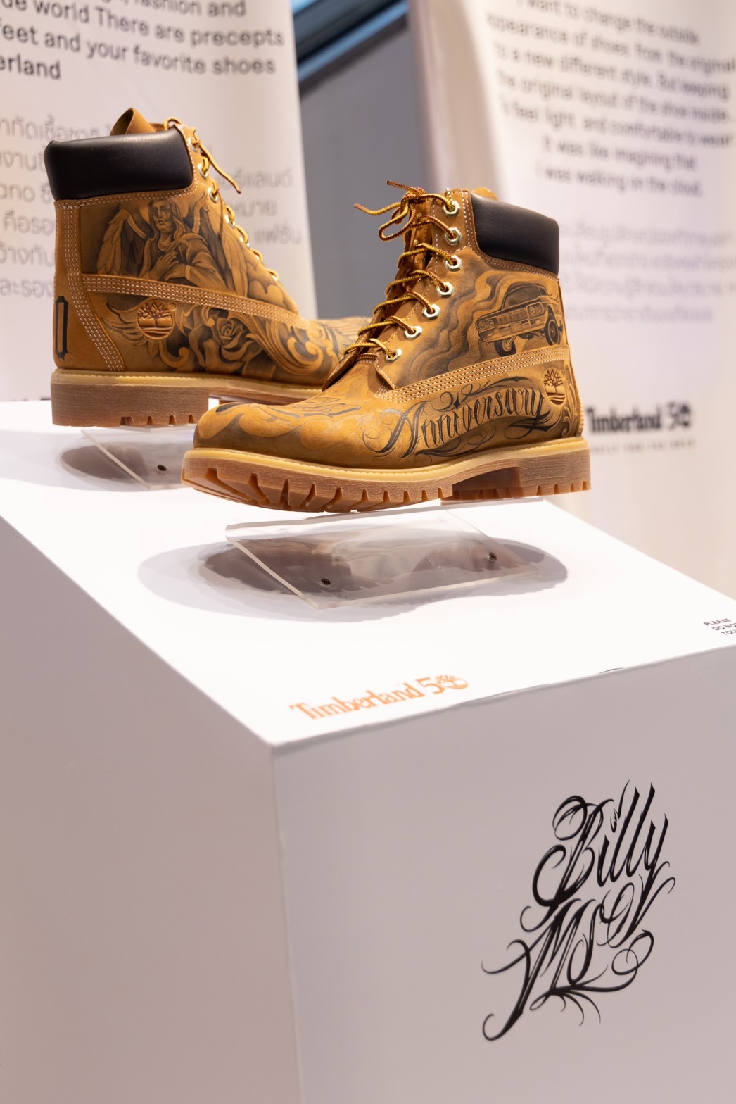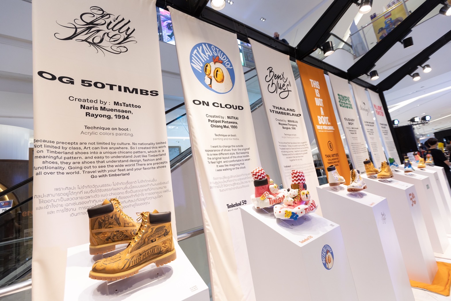 โดยในงานได้มีผลงานการออกแบบลวดลายลงบนรองเท้าบูท TIMBERLAND The Original Boots จากศิลปินไทย ทั้ง 6 ท่าน อย่าง NarisMuensaen(@billyboom_ms), PatipatPintawana (@Natkai), Kamonwan Ureerak(@simpleseasun), Kotchamon Anupoolmanee(@monning_mon), Thitipoom Phetsangkhat(@anofficerdies) และ @benxblues.studio มาร่วมรังสรรค์ออกแบบลวดลายด้วยเทคนิคต่างๆ ผ่านคอนเซป THIS IS NOT A BOOT, IT IS A CANVAS.ที่จะเป็น Rare Item สุดเจ๋งได้วางโชว์ในงานนี้