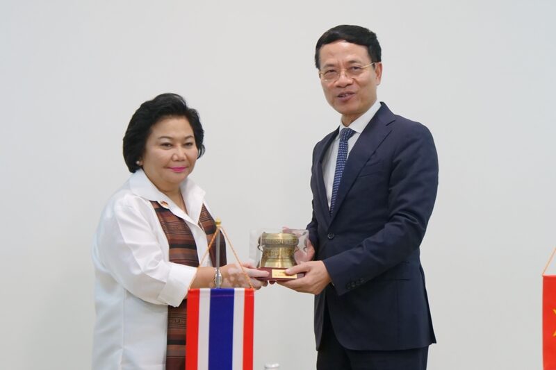 จากนั้น นางพวงเพ็ชร ร่วมหารือทวิภาคีไทย-เวียดนาม กับนายเหงียน มั่นห์ ฮุง รัฐมนตรีว่าการกระทรวงการสารสนเทศและการสื่อสารเวียดนาม ในประเด็นความร่วมมือด้านการต่อต้านข่าวปลอม โดยชื่นชมเวียดนามที่ริเริ่มข้อเสนอจัดตั้งคณะทำงานรับมือกับข่าวปลอม ที่จะเป็นโมเดลทำงานร่วมกันได้อย่างต่อเนื่องในภูมิภาคอาเซียน ในส่วนของไทยได้เสนอแนวคิดต่อเวียดนามว่า อยากให้มีการแลกเปลี่ยน หรือความร่วมมือเกี่ยวกับบทความ ข่าวต่างประเทศของอาเซียนให้มากยิ่งขึ้น เช่น กิจกรรม asean information exchange ที่ประเทศไทยริเริ่ม เน้นแลกเปลี่ยนข้อมูลข่าวสารจากหน่วยงานสื่อภาครัฐของประเทศสมาชิกอาเซียน เพื่อให้ได้มาซึ่งข้อมูลข่าวสารที่ถูกต้อง น่าเชื่อถือ ส่วนเวียดนามข้อเสนอต่อไทยถึงการพัฒนาความรับผิดชอบและจริยธรรมสังคมของสื่อและเทคโนโลยีใหม่ และในอนาคตจะต้องสร้างความร่วมมือโดยใช้ความรู้เป็นแรงขับดัน พัฒนาระบบนิเวศสื่อที่แข็งแกร่ง ส่งเสริมการเข้าถึงแหล่งข้อมูลข่าวสารที่น่าเชื่อถือ พร้อมกล่าวขอบคุณไทยที่ร่วมมือกับเวียดนามอย่างใกล้ชิดในการต่อสู้กับข่าวปลอมและข้อมูลบิดเบือนต่างๆ