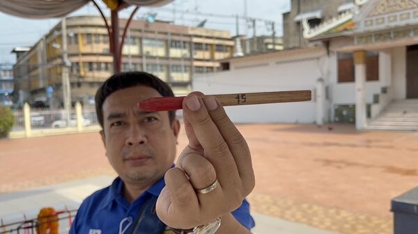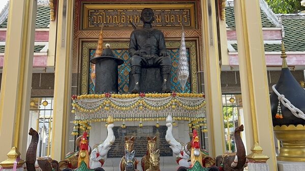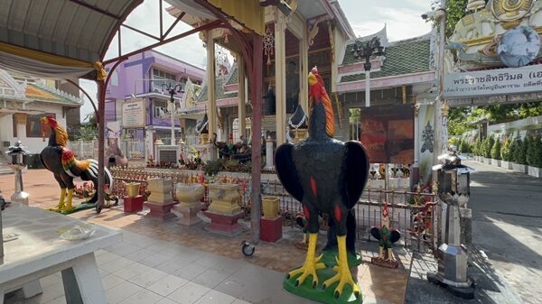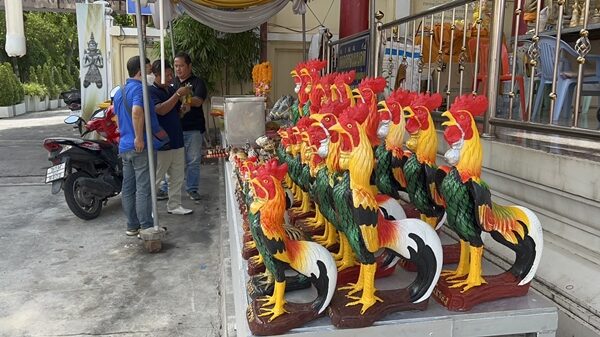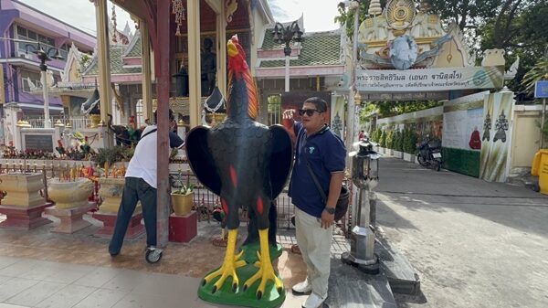 แห่ขอพร พระเจ้าตากสิน วัดดังชลบุรี เขย่าติ้วได้เลขเด็ด ฮือฮา ถวายรูปปั้นไก่ สูงกว่า 2 เมตร คาดถูกรางวัลใหญ่