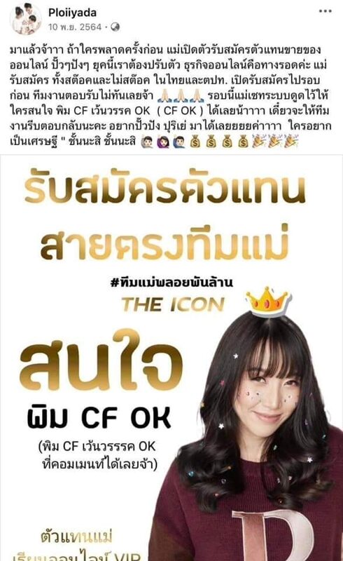 และก่อนหน้านี้ กันต์ กันตถาวร เคยออกบอกว่า ทำงานที่ดิไอคอนได้เพราะภรรยา พลอยก็เรียนธุรกิจออนไลน์ และกันต์ก็เรียนการตลาดมาอยู่แล้ว ได้ตรวจสอบมาหมดแล้ว และเห็นว่าสินค้ามี อย. ได้มาตรฐาน จึงสนใจมาร่วมงานด้วย