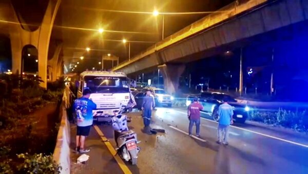 นอกจากนี้ ยังพบรถบรรทุก 10 ล้อ บรรทุกยางมะตอย ยูดี ทะเบียน ชลบุรี สภาพด้านหน้ารถพังเสียหายจนล้อหน้าหักพับ จอดขวางอยู่เลนขวา คนขับชื่อ นายจรูญ (ขอสงวนนามสกุล) อายุ 61 ปี