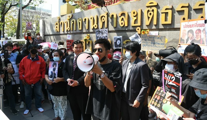 ไผ่ ดาวดิน นำมวลชน "ยืน หยุด ขัง" เดินเท้ามาหน้าศาลอาญา แสดงจุดยืน เรียกร้องปล่อยนักโทษการเมือง