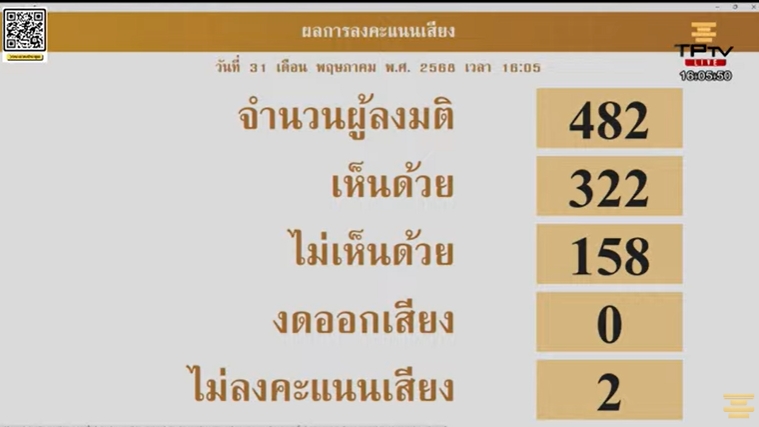 อัพเดต 31 พ.ค. 2568 เวลา 11.59 น. • เผยแพร่ 31 พ.ค. 2568 เวลา 10.59 น. • ข่าวหุ้นธุรกิจออนไลน์ผู้สื่อข่าวรายงานว่า เมื่อเวลา 16:05 น. วันที่ 31 พฤษภาคม 2568 การประชุมสภาผู้แทนราษฎร สมัยวิสามัญ เพื่อพิจารณาร่างพระราชบัญญัติงบประมาณรายจ่ายประจำปี พ.ศ. 2569 ในวาระแรก ได้เริ่มการลงมติ นายพิเชษฐ์ เชื้อเมืองพาน รองประธานสภาผู้แทนราษฎร คนที่ 1 ซึ่งทำหน้าที่เป็นประธานการประชุม ได้ถามต่อที่ประชุมว่า จะรับหลักการแห่งพระราชบัญญัติงบประมาณรายจ่ายประจำปีงบประมาณ พ.ศ. 2569 หรือไม่