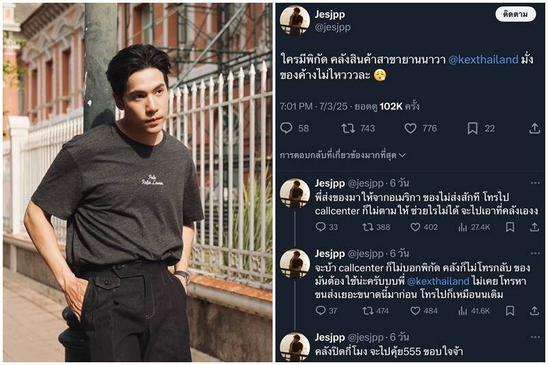 ได้ของหรือยัง? “ได้แล้ว (สรุปไปอยู่ที่ไหน?) ผมว่าเขาเห็นเอ็กซ์ผมแล้วก็ส่งมาอีกวันนึงเลย ผมไม่ได้เป็นค้นโกดังอะไรตอนนั้นดึกมากแล้ว ก็ส่งมาให้อีกวันนึง ก็ขอบคุณมาก มันเป็นของที่พี่ผมส่งมาให้สำหรับผมคือครอบครัวสำคัญสำหรับผม เวลาพี่ผมส่งของอะไรมาให้เขาก็จะอัพเดตทุกวัน ไม่อยากให้เขาเป็นห่วงว่ามันถึงหรือยัง เราก็อยากยืนยันว่าเราได้แล้ว”