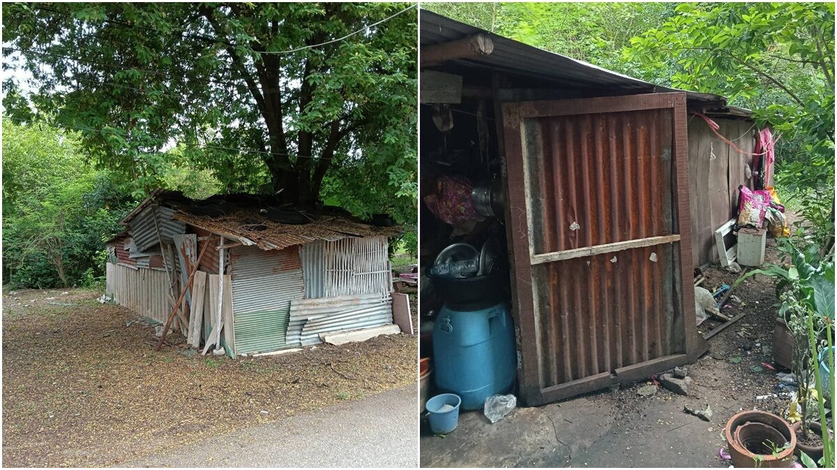 เมื่ออาตมาได้รับเรื่อง จึงเดินทางไปตรวจสอบที่บ้านคุณยาย ไม่ก็ไม่เชิงจะเป็นบ้านหรอก มันเป็นเหมือนเพิงสังกะสีเก่าๆ มากกว่า ไม่มีผนัง มีแต่สังกะสีเก่าๆ ติดเป็นผนัง แล้วก็มีป้ายไวนิลปิดไว้ เมื่อเห็นแล้วก็รู้สึกได้เลยว่ามันจำเป็นจริงๆ ที่ต้องซ่อม แล้วคุณยายก็เป็นกลุ่มคนเปราะบางด้วย อยู่ตัวคนเดียว ถ้าปล่อยให้อยู่แบบนี้ก็จะเกิดอันตรายได้ แล้วก็เข้าใกล้หน้าฝนแล้ว หลังคาที่เป็นสังกะสีก็เริ่มพัง มีรูรั่วหลายจุด จึงต้องซ่อมแซมด่วน
