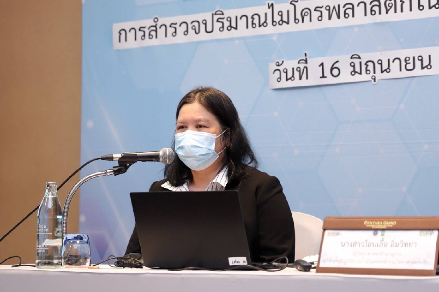 วันที่ 16 มิ.ย.68 กรมวิทยาศาสตร์บริการ กระทรวงการอุดมศึกษา วิทยาศาสตร์ วิจัยและนวัตกรรม (อว.) โดย ดร.โอบเอื้อ อิ่มวิทยา นักวิทยาศาสตร์ชำนาญการ สถาบันห้องปฏิบัติการอ้างอิงแห่งชาติ (สอช.) ได้ร่วมบรรยายในหัวข้อ “การสำรวจปริมาณไมโครพลาสติกในพื้นที่อุทยานธรณีโลกสตูล” (Investigation of Microplastic Contents in Satun Global Geopark) ภายในงานมหกรรมงานวิจัยแห่งชาติ 2568 (Thailand Research Expo 2025) โดยมีนักวิจัยและบุคลากรจากภาครัฐและเอกชนเข้าร่วมฟังกว่า 40 คน ณ ห้อง Lotus Suite 14 ชั้น 23 โรงแรมเซ็นทาราแกรนด์ และบางกอกคอนเวนชันเซ็นเตอร์ เซ็นทรัลเวิลด์ กรุงเทพฯ