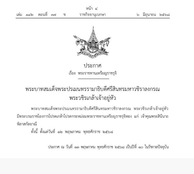 ประกาศ ณ วันที่ 13 พฤษภาคม พุทธศักราช 2568 เป็นปีที่ 10 ในรัชกาลปัจจุบัน