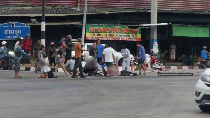 ปรากฏว่า มีรถบรรทุก 10 ล้อ ขับฝ่าไฟแดงมาชนเข้าอย่างจัง สภาพรถนักเรียนพังยับเยิน ส่งผลให้เด็กนักเรียนที่นั่งอยู่ท้ายกระบะ กระเด็นตกลงมาจากรถบาดเจ็บอยู่บนถนน ร้องไห้ระงม