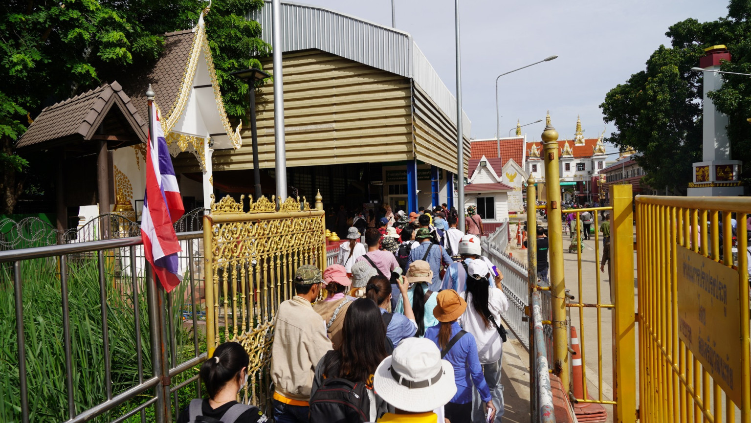 ต่อมาเวลา 8.00 น.เจ้าหน้าที่ฝ่ายไทยได้ทำการเปิดประตูใหญ่สะพานมิตรภาพไทยกัมพูชา มีบรรดาหนุ่มสาวฉทนา สปป.ลาวและเวียตนามเกือบ 1 พันคนเดินทางมารอแสตมป์พาสปอร์ตตามวงรอบหนังสือเดินทาง แต่ยังไม่สามารถเดินทางข้ามชายแดนได้ เนื่องจากต้องรอเจ้าหน้าที่ฝั่งกัมพูชาเปิดประตูด่านพรมแดนในเวลา 9.00 น. จึงทำให้ที่บริเวณจุดผ่านแดนถาวรบ้านคลองลึก มีประชาชนทั้งสองประเทศและชาติต่างๆยืนเข้าแถวรอข้ามสะพานมิตรภาพไทยกัมพูชาเป็นจำนวนมาก