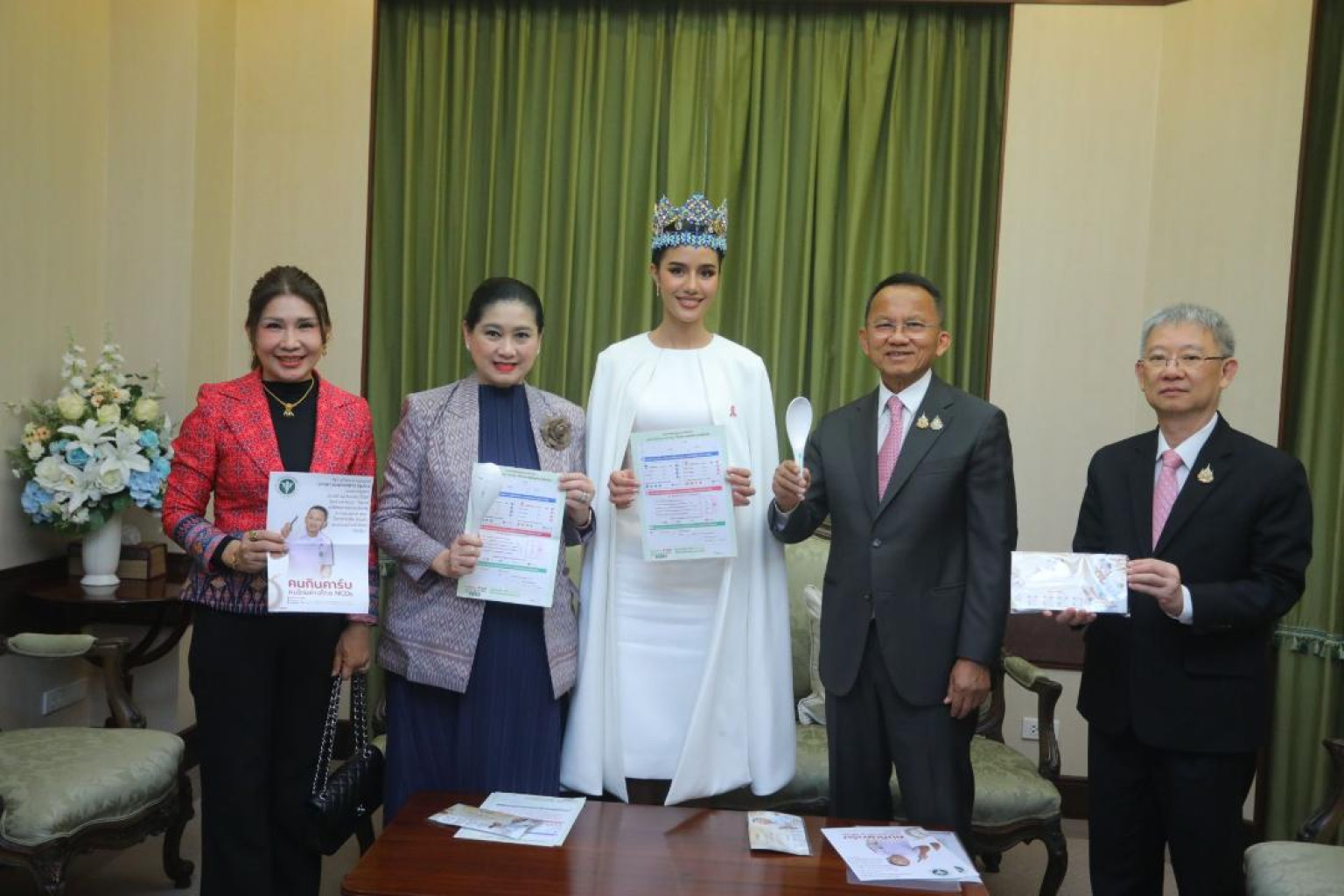 นายสมศักดิ์ เทพสุทิน รมว.สธ.พร้อมด้วย นพ.โอภาส การย์กวินพงศ์ ปลัด สธ.ให้การต้อนรับ “โอปอล สุชาตา ช่วงศรี” Miss World 2025 ที่ได้เดินทางมาหารือถึงการขับเคลื่อนการป้องกันมะเร็งในสตรี ทั้งมะเร็งเต้านม-การนับคาร์บ ลดโรค NCDs ที่กระทรวงสาธารณสุข โดยมีข้าราชการเจ้าหน้าที่กระทรวงสาธารณสุขต้อนรับ