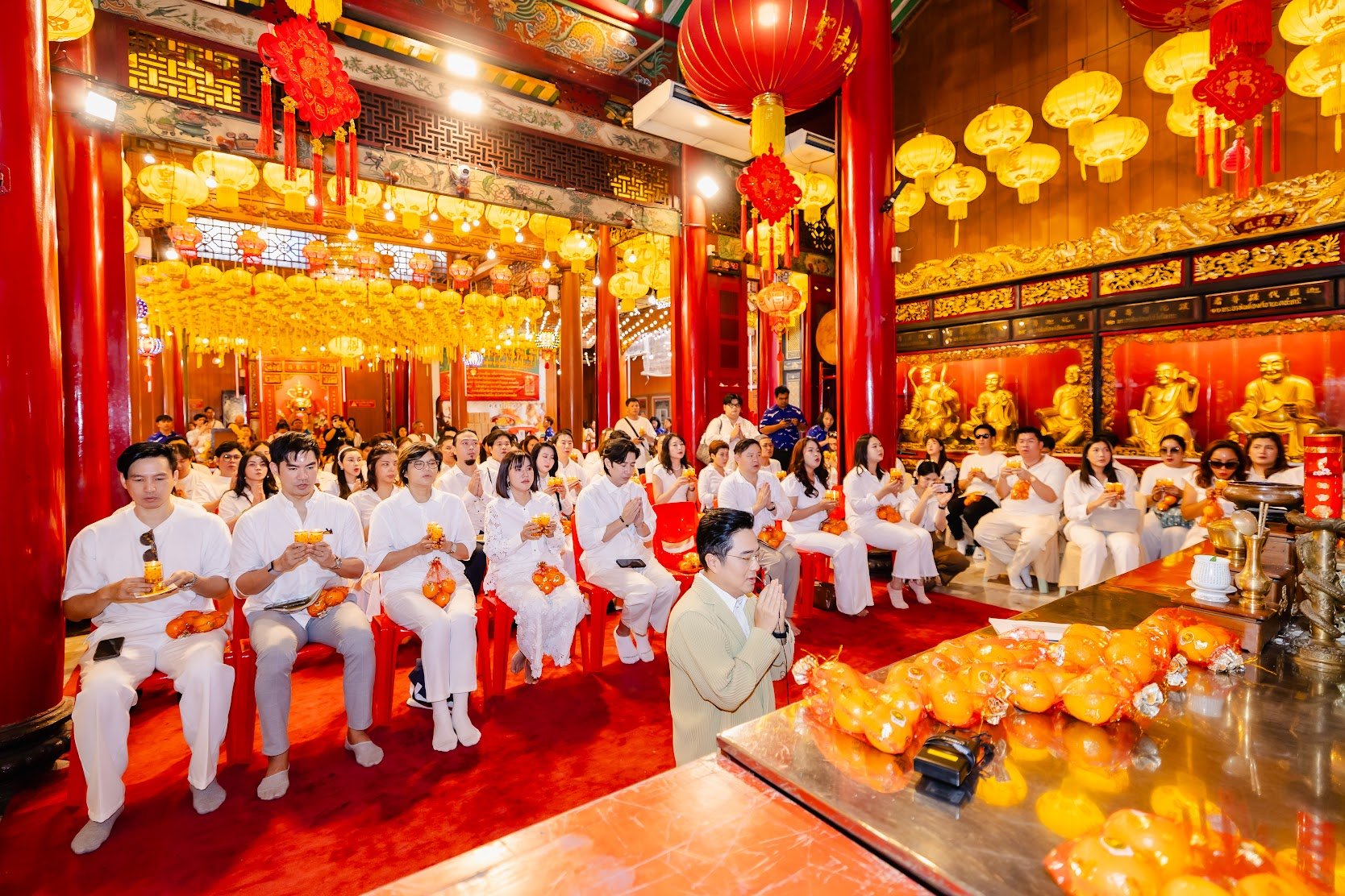 ก่อนที่ช่วงสายชาวคณะ ไลโอ (LYO) เดินทางสู่ถนนเยาวราช เพื่อเสริมพลังความปัง ความเฮงตลอดทั้งปีกันที่ วัดเล่งเน่ยยี่ หรือ วัดมังกรกมลาวาส โดยหมอช้าง จัดทำพิธีความเชื่อให้ชุดใหญ่ เป็นการเสริมสิริมงคล ปัดเป่าภัยอันตราย พร้อมพาไหว้องค์เทพ ตามจุดต่าง ๆ และที่สำคัญคือ ทุกคนที่ร่วมคณะ ได้รับพรจากท่านเจ้าอาวาส วัดเล่งเน่ยยี่